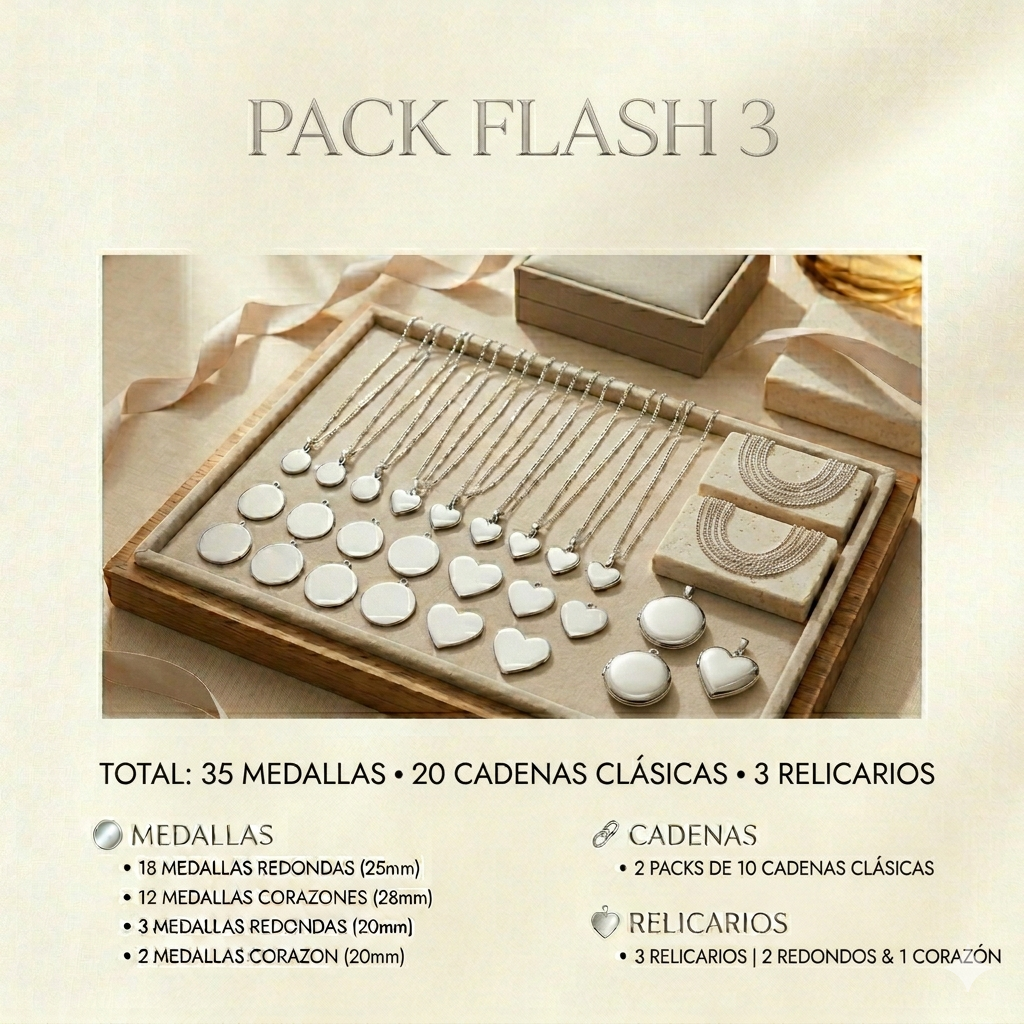 18 medallas redondas 25mm12 medallas corazones 28mm3 medallas redondas 20mm2 medallas corazon 20mm2 pack de cadenas clásicas3 relicarios (2 redondos y 1 corazon)